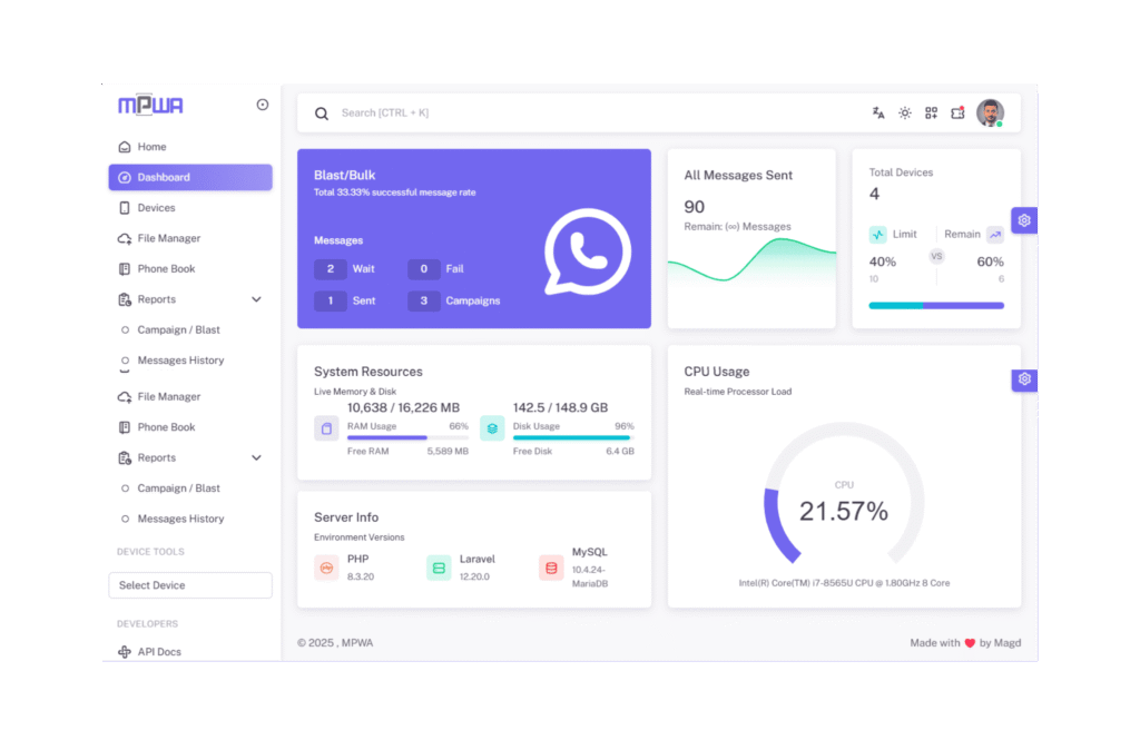 You can send regular messages and auto-reply to your customers via WhatsApp, and you can also use AI as a service provided. There are many features such as sending stickers, location, buttons, and other features. https://api.waqasmaqbool.org/en Portfolio Details Created By: Waqas Maqbool Category: Web Application Timeframe: Location: